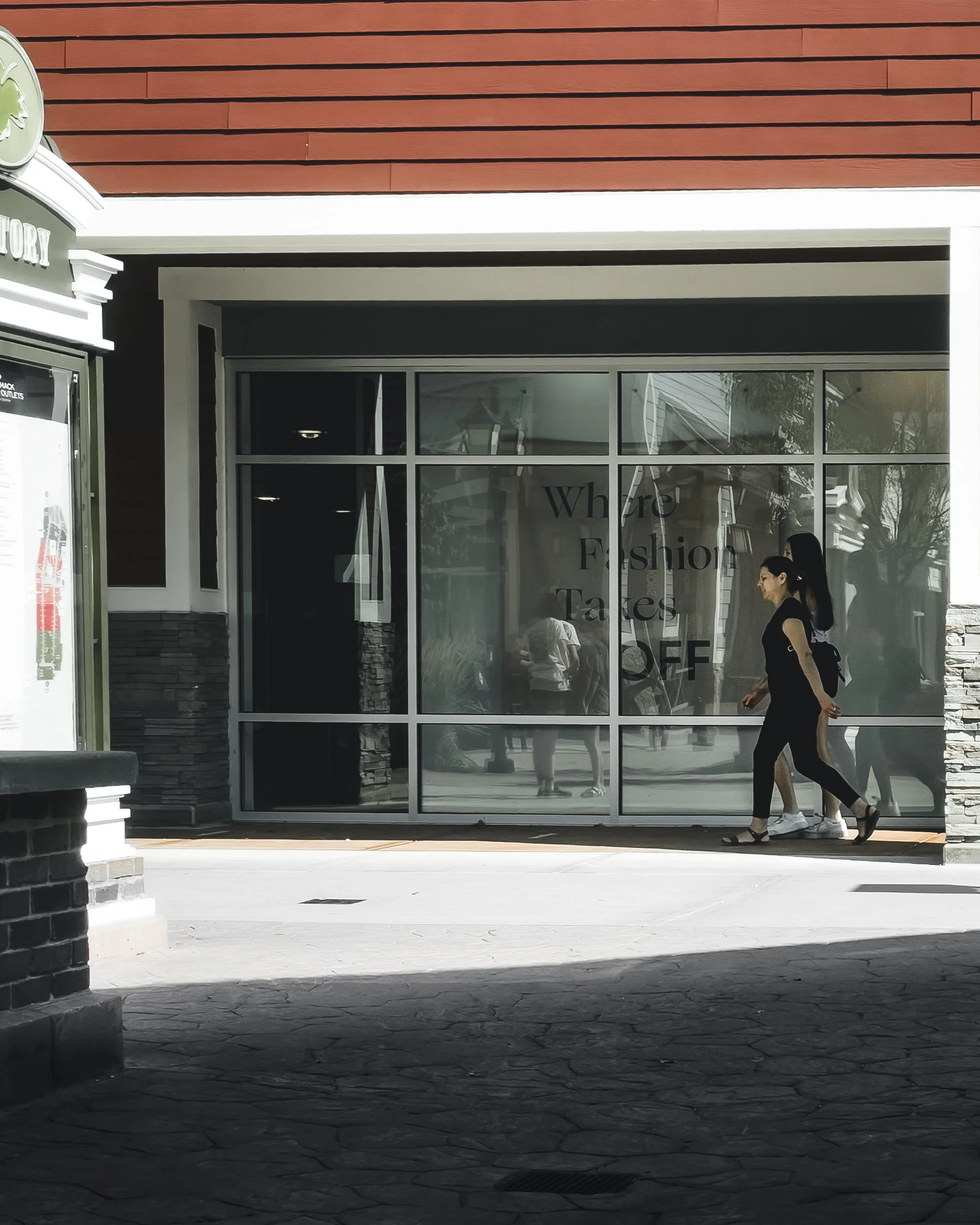Outdoor shopping malls began gaining popularity in the 1990s and early 2000s as a response to the decline of traditional enclosed malls. Developers recognized that shoppers were looking for more than convenience; they wanted an experience that felt social, walkable, and connected to the surrounding community. By combining retail with restaurants, entertainment, and open-air streetscapes, these centers evoked the feel of small-town main streets while offering modern amenities. Their appeal especially grew in regions with mild climates although several, like this outlet mall in Merrimack, NH where I grabbed these photos, began to appear in New England. I can tell you from experience that these northeast outdoor malls are fine in the summer months- when these photos were taken - but they present an entirely different shopping experience when the cold northeast winter wind whips in between the buildings.